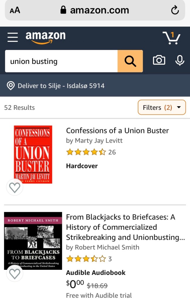 Jo, no skal du høyre. Amazon er kjend for fagforeningsknusing. Eit kjapt søk på YouTube, gjer at ein kan sjå videoer der dei fortel sine tilsette at dei ikkje er MOT fagforeninger, men ikkje akkurat for, heller. Det er, det vi kan kalle for årets understatement.