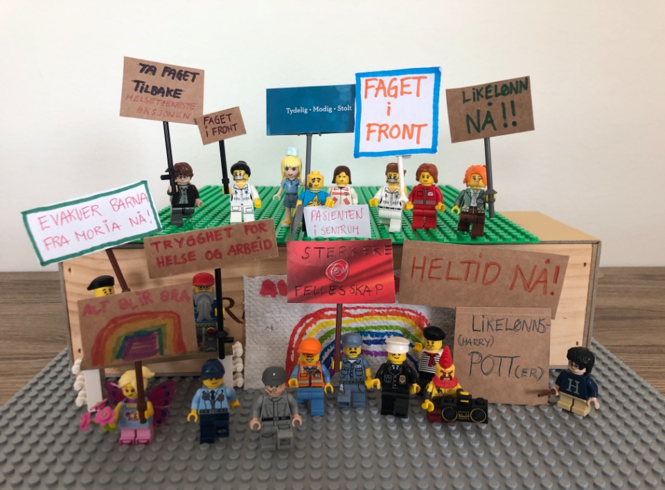 Norsk Sykepleierforbund Vestland klarte ikkje å rekruttere meir enn ein person til å bere fana. Eg skulle vikariere i trommekorpset, men så vart det heile avlyst dagen før. Når eg og dottera mi kom fram til toget, så vart eg difor litt heimlaus.